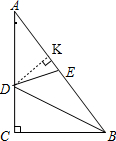 分析 过D作AB垂线交于K,证明△BCD≌△BKD,得到BC=BK=3,由E为AB中点得到BE=AE=2.5,EK=0.5,所以AK=AE-EK=2,设DK=DC=x,AD=4-x,根据勾股定理AD2=AK2+DK2即(4-x)2=22+x2解得:x=$\frac{3}{2}$在Rt△DEK中,DE=$\sqrt{D{K}^{2}+K{E}^{2}}=\sqrt{(\frac{3}{2})^{2}+(0.5)^{2}}$=$\frac{\sqrt{10}}{2}$,即可解答.