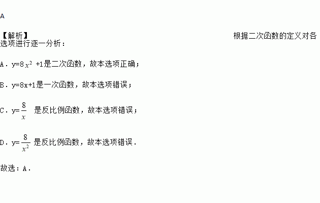 A. y=8+1 B. y=8x+1 C. y= D. y=