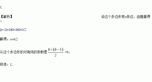 一个多边形的内角和是外角和的2倍,则这个多边形对角线的条数是( )