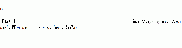 如果=3,那么(m+n)2等于( )