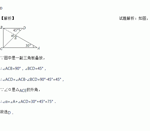 一次数学活动课上,小聪将一副三角板按图中方式叠放,则∠等于 ( )