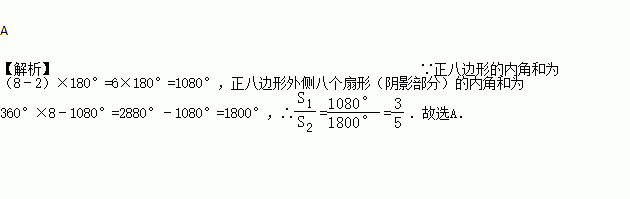 如图,把八个等圆按相邻两两外切摆放,其圆心连线构成一个正八边形,设正八边形内侧八个扇形(无阴影部分)面积之和为S1,正八边形外侧八个扇形(有阴影部分)面积之和为S2,则