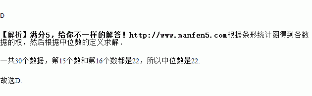 某市6月份日平均气温统计如图所示,那么在日平均气温这组数据中,中位数是( )