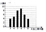 右图为某车间36位工人日加工零件数(单位:个)的条形统计图,则这些工人日加工零件数的中位数是________.