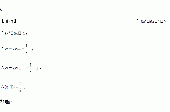 用配方法解方程3x2-6x+1=0,则方程可变形为( )