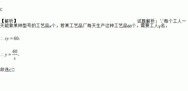 设每个工人一天能做某种型号的工艺品x个,若某工艺品厂每天生产这种工艺品60个,则需要工人y名,则y关于x的函数解析式为( )