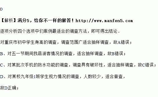 下列调查中,最适合采用全面调查(普查)方式的是( )