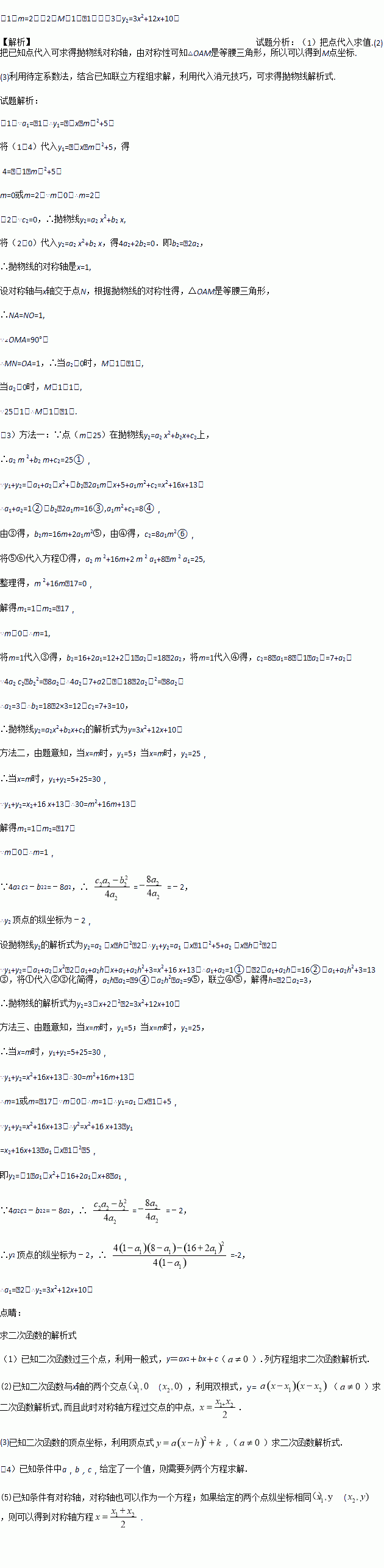 已知y1=a1(x﹣m)2+5,点(m,25)在抛物线y2=a2x2+b2x+c2上,其中m>0.
