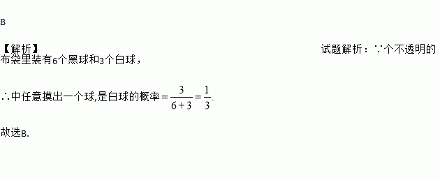 一个不透明的布袋里装有6个黑球和3个白球,它们除颜色外其余都相同,从中任意摸出一个球,是白球的概率为( )