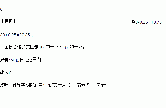 一种面粉的质量标识为“20±0.25千克”,则下列面粉中合格的是( )