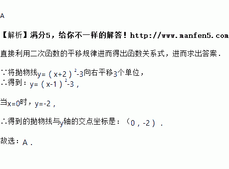 将抛物线y=(x+2)2﹣3向右平移3个单位,得到的抛物线与y轴的交点坐标是( )