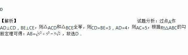 如图,已知等腰直角三角形ABC的各顶点分别在直线l1,l2,l3上,且l1∥l2∥l3,l1,l2间的距离为1,l2,l3间的距离为3,则AB的长度为( )
