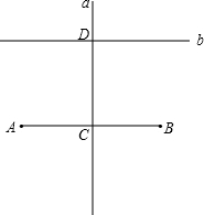 分析:(1)(2)通过作线段垂直平分线的方法作出线段的中点和垂线a;(3)通过测量的方法找到D;(4)利用平移的方法作出AB的平行线b.