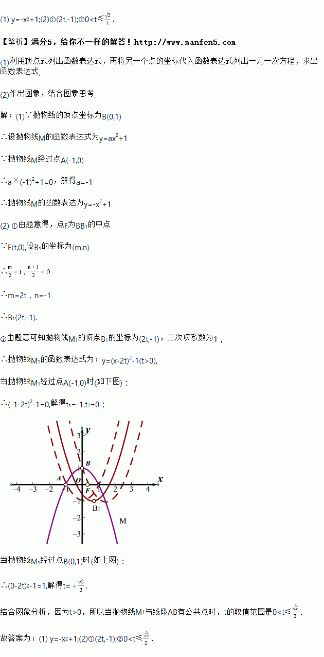 (2)设F(t,0)为x轴正半轴上一点,将抛物线M绕点F旋转180°得到抛物线M1.