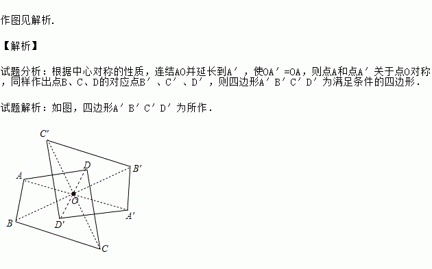 如图,已知四边形ABCD及点O.求作:四边形A′B′C′D′,使得四边形与四边形ABCD关于O点中心对称