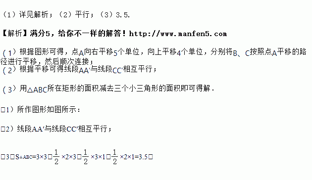 (1)把△ABC进行平移,得到△A′B′C′,使点A与A′对应,请在网格中画出△A′B′C′;