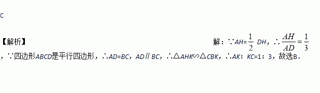 如图1,H为平行四边形ABCD中AD边上一点,且AH=DH,AC和BH交于点K,则AK:KC等于( )