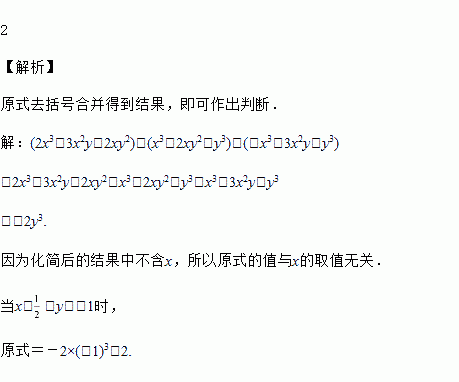 有这样一道题:“计算(2x3-3x2y-2xy2)-(x3-2xy2+y3)+(-x3+3x2y-y3)的值,其中x=