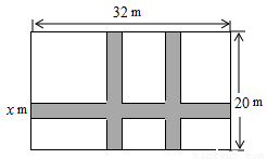 如图,某小区计划在一块长为32 m,宽为20 m的矩形空地上修建三条同样宽的道路,剩余的空地上种植草坪,使草坪的面积为570 m 2.若设道路的宽为x m,则下面所列方程正确的是( )