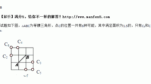 如图,正方形网格中的每个小正方形边长都是1.已知A、B是两格点,若△ABC为等腰三角形,且S△ABC=1.5,则满足条件的格点C有( )