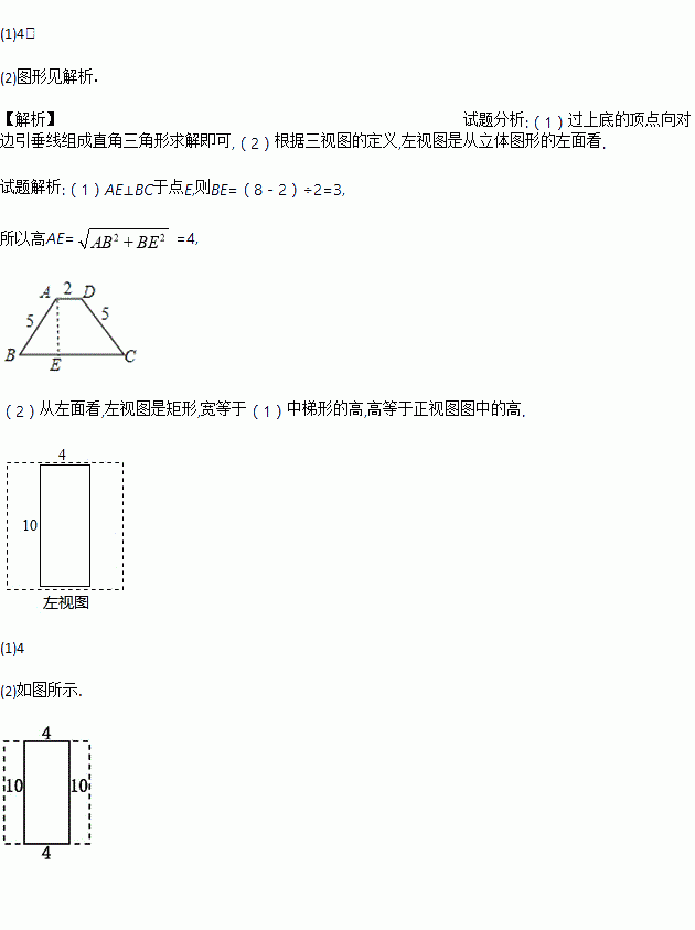 (1)根据图中所给数据,可求出俯视图(等腰梯形)的高为________;