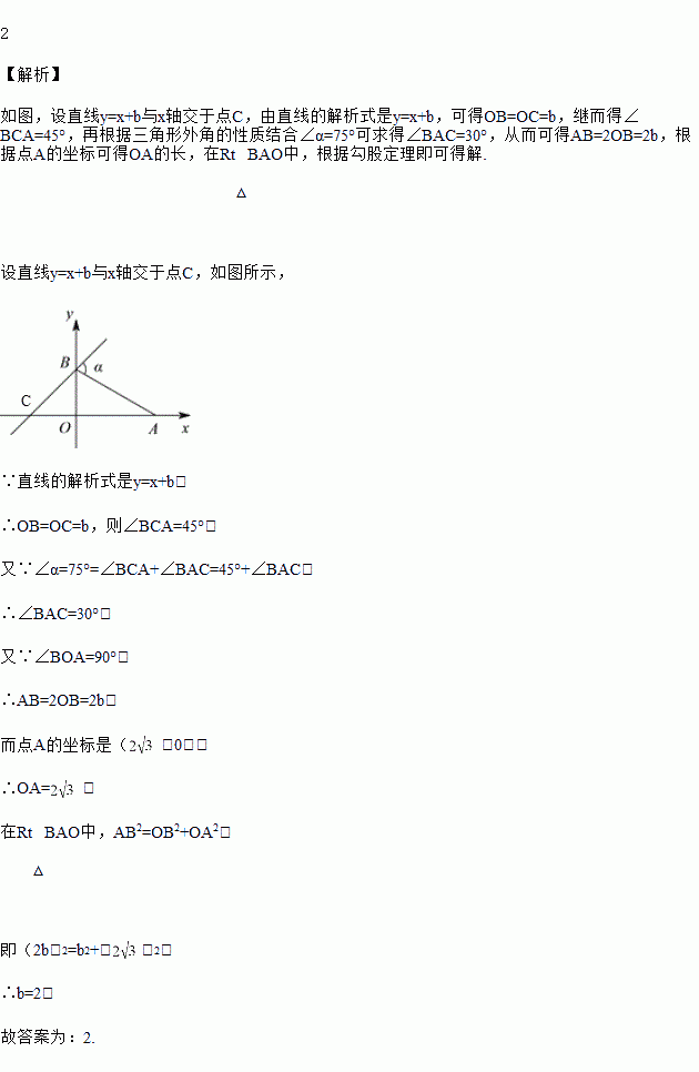 如图,已知A点的坐标为,直线与y轴交于点B,连接AB,若,则____________.