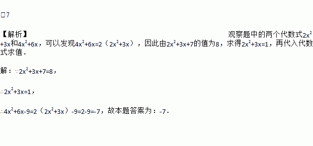 如果代数式2x2+3x+7的值为8,那么代数式4x2+6x﹣9的值是_____.