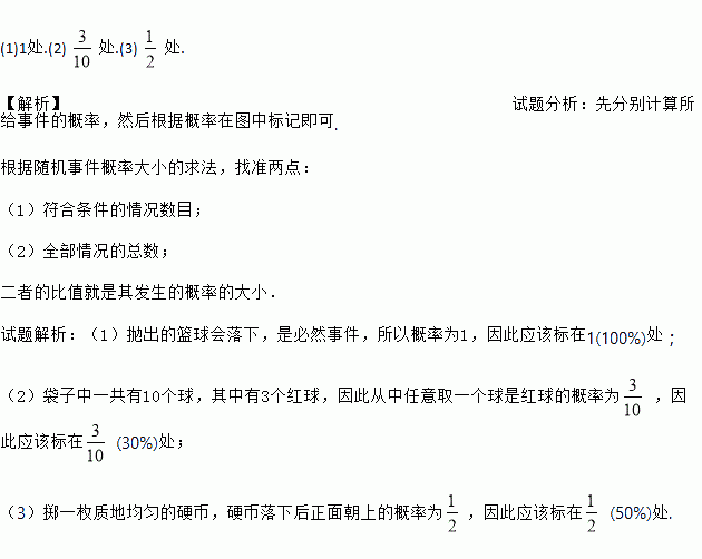 (2)从装有3个红球、7个白球的口袋中取一个球,恰好是红球(这些球除颜色外完全相同);