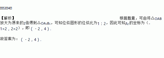 如图,在平面直角坐标系中,点A的坐标为(﹣1,2),AB⊥x轴于点B,以原点O为位似中心,将△OAB放大为原来的2倍得到△OA1B1,且点A1在第二象限,则点A1的坐标为_____.