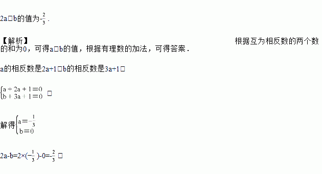 如果a,b表示有理数,a的相反数是2a+1,b的相反数是3a+1,求2a﹣b的值.