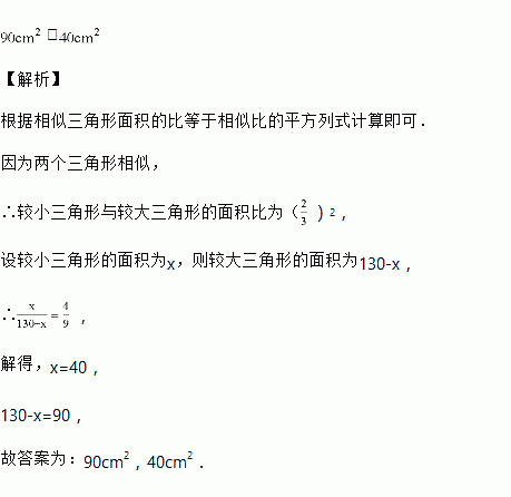 两个三角形相似,一组对应边长分别为和,若它们的面积之和为,则这两个三角形的面积分别为________.