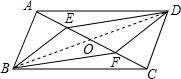 12.分析 连接BD,根据平行四边形的性质可得BO=DO,再根据平行线的性质可得∠BEO=∠DFO,然后证明△BOE≌△DOF,可得EO=FO,可判定四边形BEDF是平行四边形,进而可得ED=BF.