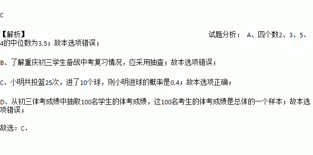 A. 四个数2、3、5、4的中位数为4