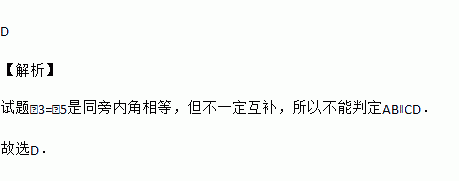 A. ∠3=∠4 B. ∠1=∠5 C. ∠1+∠4=180° D. ∠3=∠5