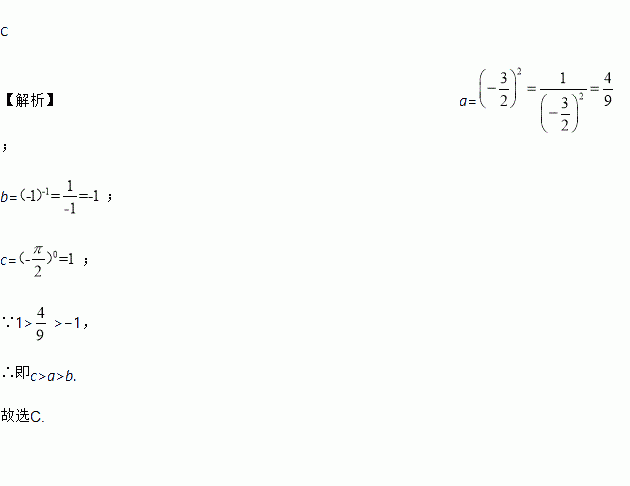 若a=(﹣)﹣2,b=(﹣1)﹣1,c=(﹣)0,则a,b,c的大小关系是( )
