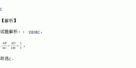 如图,在△ABC中,DE∥BC,若,则等于( )