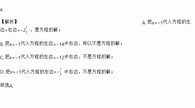 下列方程中,以x= -1为解的方程是 ( )