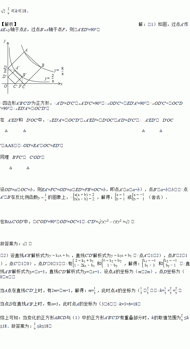 (1)当k=2时,正方形A′B′C′D′的边长等于____.