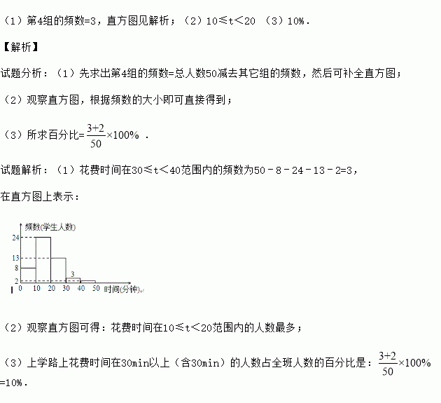 (3)该班学生上学路上花费时间在30min以上(含30min)的人数占全班人数的百分比是多少?