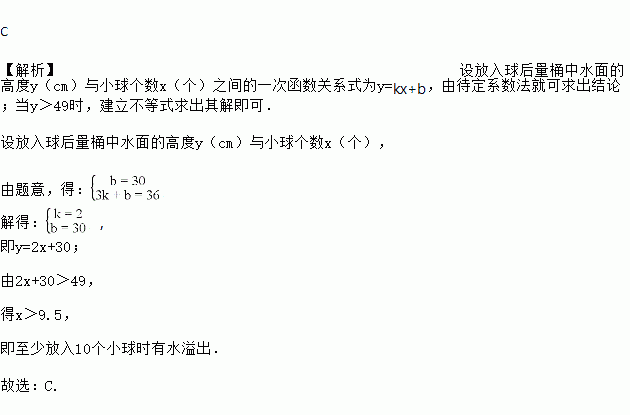 小菲受《乌鸦喝水》故事的启发,利用量筒和体积相同的小球进行了如下操作,请根据图中给出的信息,量筒中至少放入( )个小球时有水溢出.