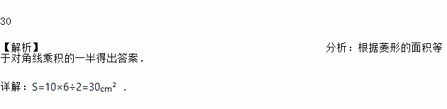 已知菱形的两条对角线长为10和6,那么这个菱形的面积为_________.
