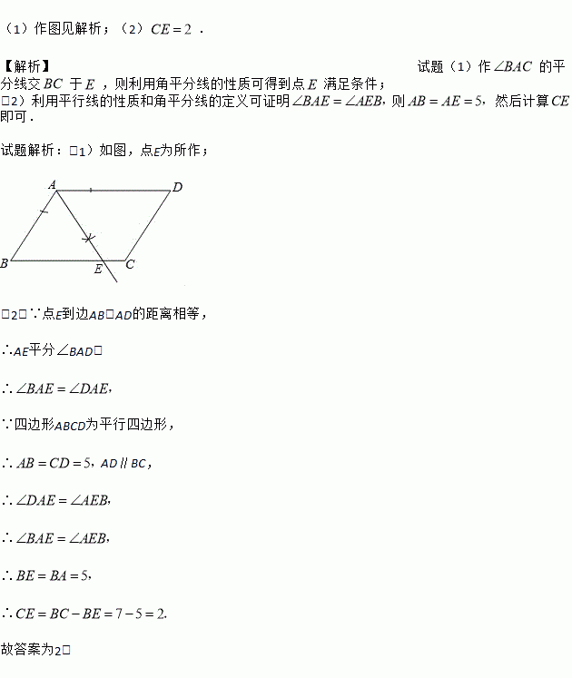 (1)利用尺规作图,在BC边上确定点E,使点E到边AB,AD的距离相等(不写作法,保留作图痕迹);