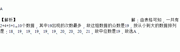 某篮球队10名队员的年龄如下表所示:则这10名队员年龄的众数和中位数分别是( )