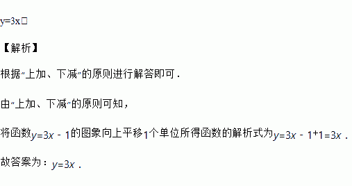将直线y=3x﹣1向上平移1个单位长度,得到的一次函数解析式为_____.