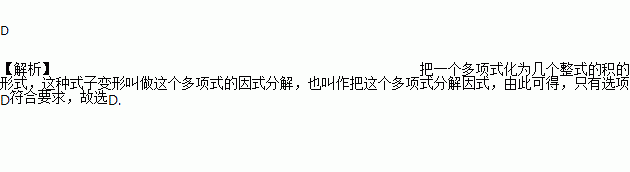 下列各式中从左到右的变形,是因式分解的是( )