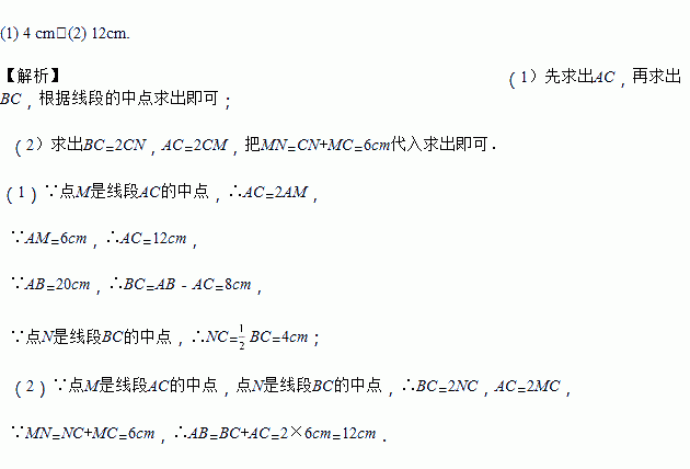 (1)如果AB=20 cm,AM=6 cm,求NC的长;