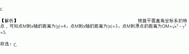 C. 点M到原点的距离是5 D. 以上说法都不对
