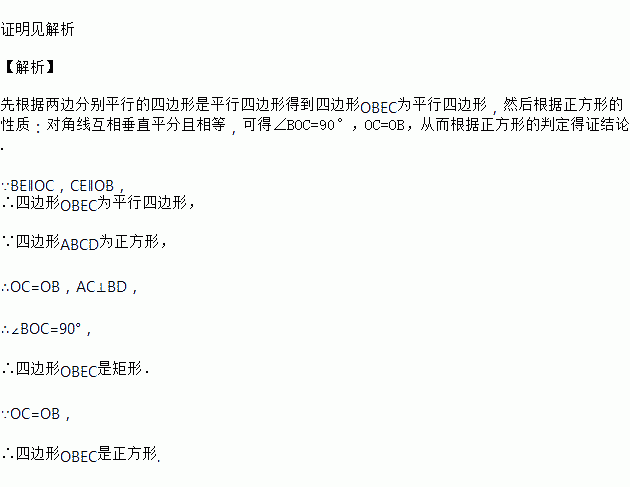 如图,正方形ABCD的对角线AC、BD相交于点O,BE∥AC,CE∥DB.
