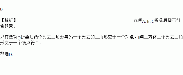 如图,点A,B,C是正方体三条相邻的棱的中点,沿着A,B,C三点所在的平面将该正方体的一个角切掉,然后将其展开,其展开图可能是( )
