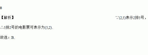 电影票上的“2排5号”如果用(2,5)表示,那么“5排2号”应该表示为( )